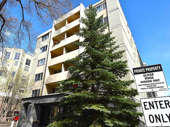 Impressive 2 Bedroom Condo in sought after Neighborhood of Oliver. Prime Location West of Central Downtown close to many Amenities and within walking distance to Victoria River Valley Park and Victoria Golf Course. 1/2 Block from Grant Notley Park and Wonderful Views of the River Valley. Cozy Kitchen and Dining Room with Patio Access. Enjoy Daily Sunsets on the Patio. Spacious & Bright Living Room shows Large Windows and Views overlooking the City and River Valley. Two Great Sized Bedrooms with Double Closets. Updated 4PC Bathroom. Shared Laundry, Laundry Room just down the Hall. Elevator right next to the Unit for Convenience. Convenient Parking Space Assigned to Unit Only a Few Steps to the Back Entrance and Elevator to Your Floor. Beautiful Neighborhood Lined in Elm Trees with the Convenience of Downtown Atmosphere. Excellent Place to Call Home!!!