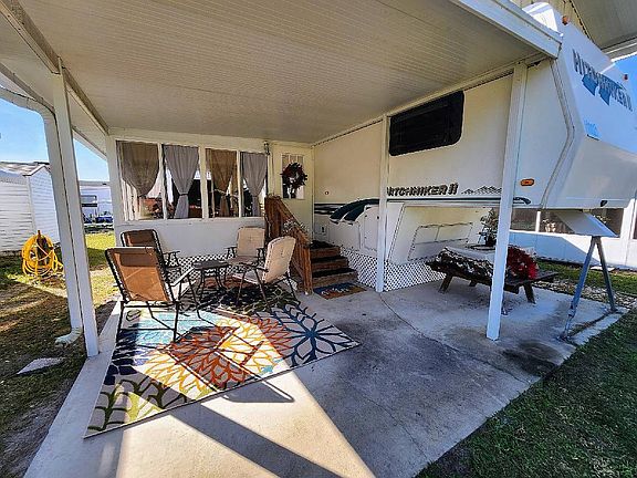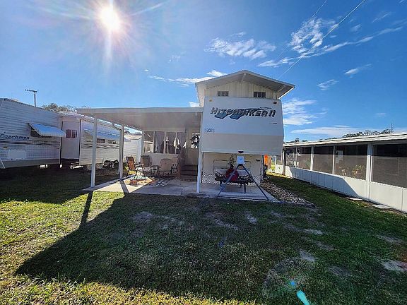 Open, airy, and bright this is glamping at its finest. This cozy Florida camper home is move in ready and can be used seasonally or all year around. The roof and air conditioner have been updated. The beautiful furnishings and decor have recently been updated as well. The Florida room adds an extra 156 square feet of living space. There is also a nice sized workshop like shed area which also houses the newer washer and dryer. The community has a very affordable lot lease which includes the lawn, water, sewer and trash. The community also is close to Webster market and conveniently located to the I-75. This rural setting is a dream come true. Call today to make this your place to call home. LB11235