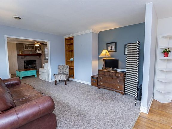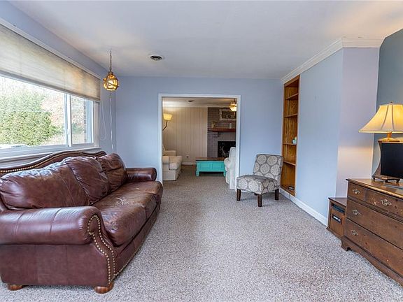 Situated on 6.5 ACRES, this brick ranch offers 1,500 sq ft of living space, 3 bedrooms and 2 full baths. Inviting foyer with wood floors. Living room with large picture window (recently replaced), neutral paint and carpet. Family room with painted brick fireplace with gas insert. Side entrance door and mud room w/ laundry. Kitchen with ample storage, white cabinetry, stainless steel appliances and eat-in area. Exterior features: rear fenced yard for the four legged family members, detached garage (approx. 1,000 sq ft) with loads of potential (partially finished as a game room, other part used as storage space) & detached storage shed. Dimensional roof, heat pump, fence were done in 2008. Property goes beyond stream in the woods. Country living with a short commute to grocery stores, restaurants & interstates! Private location yet not too far out!