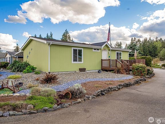 Must see this Well Maintained Open Concept & Spacious 2016 (NEWEST) Condo Unit in Tall Firs Park! Beautiful Corner Lot, Freshly Painted inside & Out! 55years+ Community. You OWN the 5400 sq ft Lot So you don't Pay lot Rent, just $125 HOA Monthly for Common Maintenance. 2 Bedrooms, 1 full bath 1,080 sq ft. One small Cat and Dog are Allowed( 35lbs or less), Covered 2 Car Carport and a Large Spacious Backyard with Shed. RV/boat Parking Available for Homeowner's use, on Septic. Clubhouse with a Kitchen, Event Space and Library for your use! Updated Appliances, New Roof, AC installed Summer 2025, Updated Landscaping and Carport. All Appliances to stay. 1Yr Warranty to new Buyer. Easy access to Shopping, I-5, Buses and all Basic Needs.