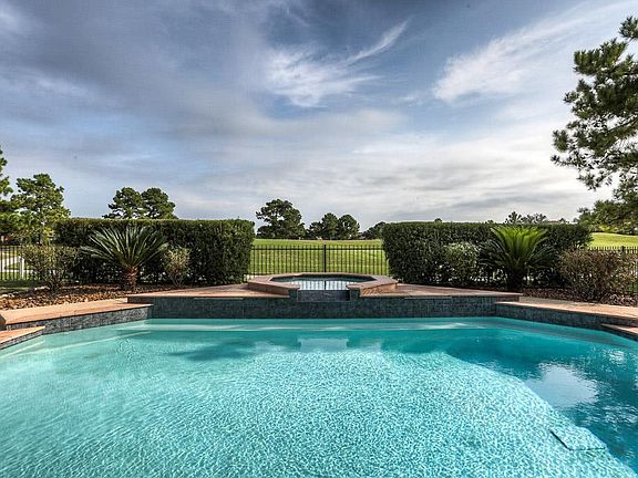 PARADISE on Hahns Peak! This dream home backs to the Houston Nat'l Golf Course (*No Back Neighbors*) and offers a stunning pool & hot tub. The outdoor covered lounge is a haven for relaxation & gazing at the abundant green space. A 2-story family room, fireplace, formal dining, granite countertops, office, master suite down, tray ceilings, jetted tub & separate glass shower, game room, study, and three additional bedrooms up are offered. Imagine creating memories at this oasis in Stone Gate!