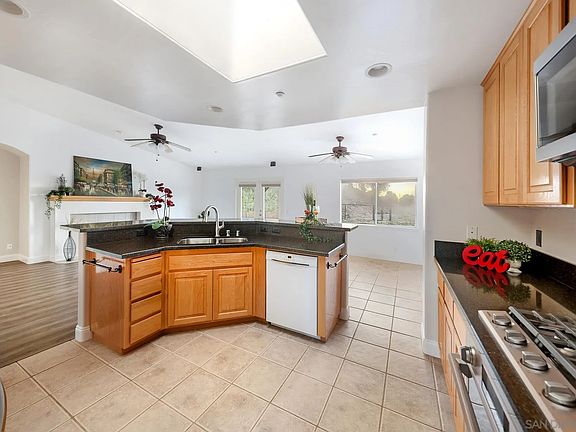 Welcome to your private escape in the hills of North Escondido/Valley Center. This spacious 5-bedroom, 3-bathroom home spans 2,462 sq. ft. and sits proudly on 2 fully fenced acres, offering the perfect balance of privacy, comfort, and modern living. From the moment you arrive, you’ll be greeted by sweeping views, a long private driveway, and the charm of a single-story layout designed for effortless living. The exterior showcases low maintenance landscaping and an inviting front entry framed by palm trees. Inside, the open-concept kitchen shines with granite countertops, stainless steel appliances, and abundant cabinetry, making it the heart of the home. Natural light flows through every room, highlighting fresh finishes and spacious living areas. With five full bedrooms on opposite sides of the home, there’s room for everyone whether you’re accommodating a growing family, creating a home office, or setting up a guest retreat. The primary suite is a true sanctuary, featuring a spa-like bathroom with dual vanities, a soaking tub, and a walk-in closet. Additional bedrooms and bathrooms are equally inviting, with updated flooring and bright, modern touches throughout. Step outside to discover wide-open spaces perfect for entertaining, gardening, or even keeping animals. The covered patio and gazebo provide the ideal backdrop for al fresco dining or relaxing evenings under the stars. Plus, with solar panels, you’ll enjoy energy efficiency and peace of mind.