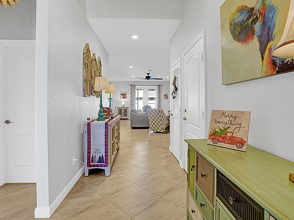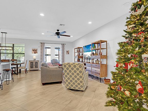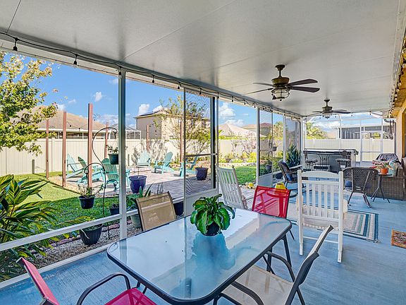 Beautiful well maintained home in the Verona Trace community of Vero Beach. 3 Bedroom, 3 Full Bathroom, 3 Car Garage home with a custom designed backyard oasis. Inside there's an open concept kitchen living and dining area with diagonal tile flooring. The kitchen features ample counter space, white cabinetry, granite countertops, a spacious island, pantry and a gas stove. Each guest bedroom is located near a full bathroom, ensuring privacy for all guests and making it great for multi-generational living. Primary bedroom overlooks the backyard and has a spacious walk in closet. Primary bathroom features a large walk in shower, dual sinks and a separate water closet. The custom designed backyard has something for everyone. Enjoy indoor/outdoor living with the screened-in, covered patio featuring a hot tub and plenty of space for seating and enjoying outside meals. The fully fenced backyard features a large paved walkway leading to the fire pit, making a great space for gathering with family and friends. There's a separate garden with custom stonework and plenty of grassy areas for pets. The home features a water filtration system and has gas connected for the kitchen stove. Must see in person to appreciate all of the custom touches. Pride of ownership shows throughout. Verona trace features a community pool and tennis courts. Call today for a private showing.