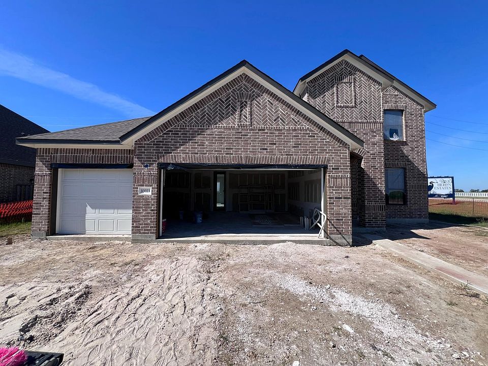 Majestic family home with 3-car garage on a corner lot. The Tyler plan blends elegance with practicality, welcoming you through a grand foyer that opens to a versatile home office/study. The open-concept layout flows seamlessly from the family room to the kitchen, where a large island and a spacious breakfast nook create the perfect setting for everyday living and entertaining. Step outside to a covered patio, ideal for summer barbecues and outdoor relaxation. Upstairs, a generous game room offers a retreat for family fun, while thoughtfully designed secondary bedrooms provide comfort and privacy. The home features the bold Noir Collection, showcasing striking black cabinetry, deep contrasts, and luxurious finishes like smooth stone and gleaming brass for a sophisticated touch. Located in the newest section of Blue Heron Estates in Mt. Belvieu, this home offers prime access to top schools, shopping, and dining—making it the perfect choice for modern family living.