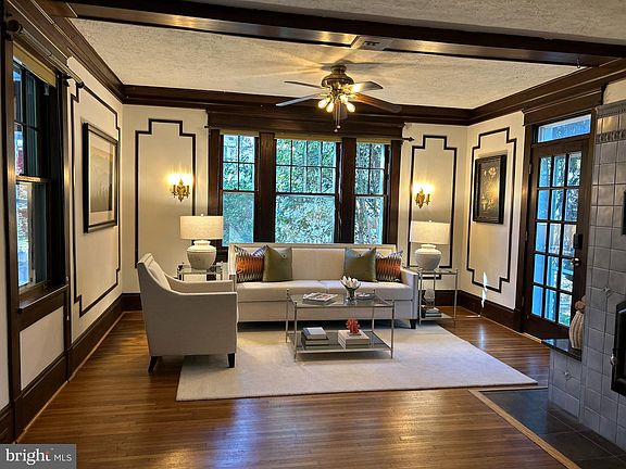 EXCITING turn-of-the-century Victorian country home on double lot is located in a comfortable, eclectic neighborhood within a Montgomery County Historic District. The property exudes charm, surprisingly, generous sized living room, dining room and library, approximately 4188 sf under roof (includes 3273 fin sf) and a private wooded half acre. Commuting conveniences - Forest Glen Metro station and I-495 (1.3 mile ) and mins to Walter Reed Hospital, Bethesda Naval Hospital and NIH. INTERIOR highlights incl: high ceilings, front and back staircases, refinished oak and pine floors throughout, freshly painted interior, 5 bedrooms up, attractive mosaic faced wood stove, folding glass doors opening to the library w/built-in bookcases, spacious dining room with fireplace, cozy fam room/sunroom, 3 full baths, inviting covered front porch, country kitchen with tall cabinets, wood stove, center island with 2nd sink, newer dishwasher, Nov, 2025 - upgraded S/S GE Profile French door refrigerator, GE induction/convection stove, Profile microwave/exhaust fan, breakfast room, spacious walk-up attic, windows galore, and a large walk-out basement divided into 5 rooms. CLIMATE controlled - Attic heat pump cools the entire bedroom level. The main level heating and cooling system has been upgraded with multi-split Mitsubishi systems. Radiators are also present. Sept, 2025 - installed upgraded Corning asphalt roof shingles and 2 skylights with remote controlled shades. The former roof shingles were completely removed. EXTERIOR features: The yard includes multiple brick sidewalks, 2 sizable brick patios, 2 fenced fish ponds, many mature trees, garden house, hints of formal gardens. This corner lot is mostly fenced with white picket style fencing. An incomplete pickle ball court ( approx. 61' x 31') on the rear yard is laid over the previous off-street parking. The home has been well- maintained. The property is being sold “as is”. The picket fence and several window panes need repairs.