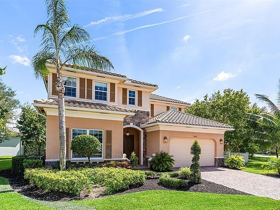 Stunning 5-bedroom, 4.5-bath lakefront home in a gated community with resort-style amenities. Enjoy wide water views and a light-filled layout featuring ceramic tile floors, knockdown ceilings, raised panel doors, and elegant Colonial trim. The gourmet kitchen offers European-style cabinetry, granite countertops, and stainless steel appliances. Upstairs, the spacious primary suite boasts a private lakefront balcony, custom closets, a sitting nook, and a spa-inspired bath with dual sinks, soaking tub, and separate shower. Generously sized bedrooms and open living areas make this home perfect for both everyday living and entertaining.