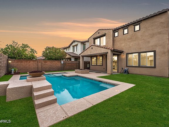 Welcome to this beautiful 4-bed, 3-bath Eastmark home with a loft—ideal for families! New carpet has just been installed, adding fresh comfort and style throughout. Just minutes from parks, walking paths, a clubhouse, and a private lake, there's always something to explore. Inside, enjoy a spacious den with custom library shelving, perfect for homework or a cosy reading spot. The gourmet kitchen offers a double oven, large island, gas cooktop, and SS fridge—great for gatherings. A private guest suite is tucked downstairs, while upstairs features a spacious master and a Jack-and-Jill bath for the kids. The backyard? Pure fun—with a pool, turf, and firepits. Don't miss your chance to see this home before it's gone!