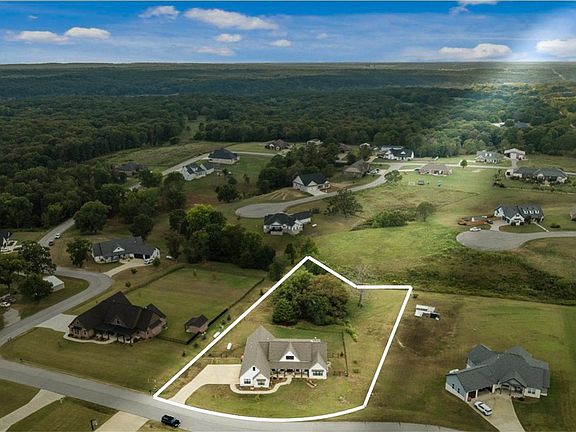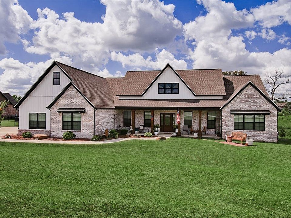 Tucked away in peaceful Moonlight Valley, this custom-built 3-bedroom plus office/flex room sits on 1.05 acres, offering hand-selected details & thoughtful design. The open concept showcases high ceilings, striking beams, exposed brick columns, brick to ceiling surround on a wood-burning fireplace & luxury wood tile floors. The gourmet-inspired kitchen features beautiful honed granite, an oversized island with clever storage, quaint farmhouse sink, charming wood plank hood, timeless backsplash, soft-close cabinetry, hidden appliance storage & a large pantry! The vaulted primary suite boasts wood tile floors, a spa-like bath with soaking tub, dual vanities & walk-in tiled shower. A hidden Murphy door bookcase with custom built-in lockers add character & plenty of storage. Outdoor living shines with covered front & back porches, a deck for sunset views, oversized 3-car garage & space to build a shop! Just minutes to I-49 offering easy access to Walmart HQ. This lovely home blends country living with convenience!
