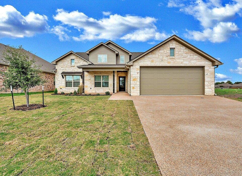 Farm House style home with stone veneer features 4 BR 2 Baths. Kitchen has stainless steel appliances, custom cabinets, large granite countertop island with seating, formal dining area, living room with electric fireplace. Designer vinyl plank flooring in main area, master bedroom, & bedroom 4. Carpet in bedroom 2 and 3. Master suite is isolated and features a private bathroom with walk-in shower, stand alone tub, dual vanities, and an oversized closet. Ceiling fans and 2" faux blinds throughout. Covered patio with fenced in backyard, two car garage, sprinkler system and much more! Located in the Renaissance Addition and Midway ISD! HOA. Agent Owned.