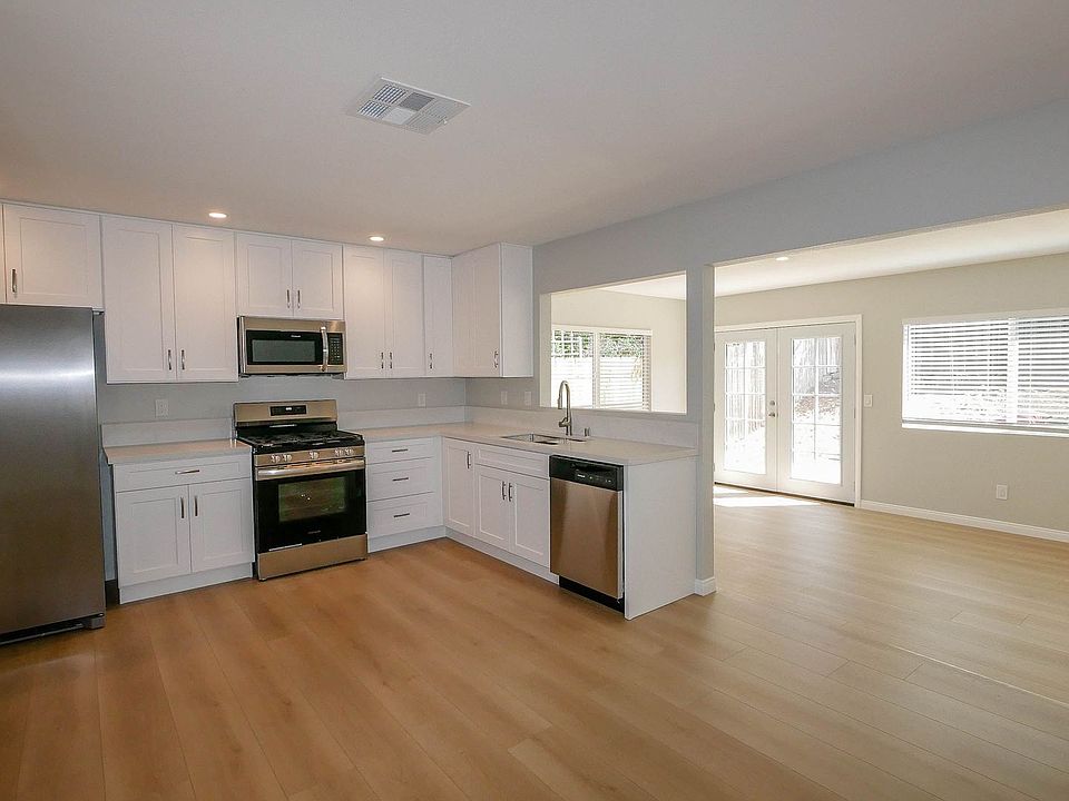 Welcome to your new home at 10025 Embry Way in Mira Mesa! This beautifully remodeled 4-bedroom, 2-bathroom home offers modern upgrades and plenty of comfort. Enjoy cooking in the brand-new kitchen featuring stainless steel appliances, quartz countertops, and stylish new cabinetry. The spacious living room boasts a cozy fireplace, perfect for relaxing evenings.