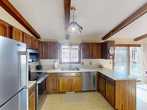 This 0.43-acre wooded lot on a cul-de-sac in Coon Rapids offers inviting curb appeal, welcoming you to a well-maintained 4BR/2BA home. Located close to Coon Rapids Dam Regional Park, the home features a spacious foyer with vaulted ceilings that leads upstairs to a generous living room filled with natural light and a wood fireplace. The adjoining dining room opens to a wraparound deck overlooking the backyard with a storage shed. The kitchen boasts stainless steel appliances and ample cabinet/counter space. The upper level also includes a full bathroom and 2BRs, including the primary w/a private balcony/deck. Downstairs, there is a finished L-shaped family room with another wood-burning fireplace and walkout access to the backyard, plus two more bedrooms and a 3/4 bathroom. This home also includes a 24x24 oversized two-car garage. Don’t miss out on the chance to own this beautiful Coon Rapids home.