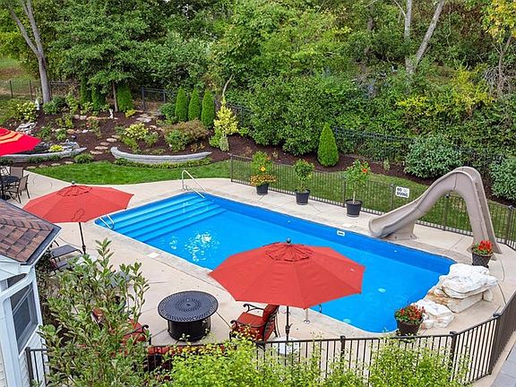 Stately Fischer & Frichtel home boasting impressive curb appeal, located in the highly sought-after Canterbury Farms neighborhood. This exceptional residence showcases a beautiful open floor plan designed for both entertaining and everyday living. Gorgeous hardwood floors and abundant natural light flow seamlessly throughout the main level, enhancing the home’s spacious, elegant atmosphere. The gourmet kitchen is a true showpiece—where timeless craftsmanship meets modern sophistication. Custom inset cabinetry with LED under-cabinet lighting in a soft cream finish extends to the ceiling, accented by polished nickel hardware. The expansive quartzite island serves as the centerpiece, offering generous seating and a stunning workspace for both culinary artistry and casual dining. Top-tier GE stainless appliances, including a gas cooktop with updraft, wall oven, and French-door refrigerator, elevate both form and function. Designer lighting, a refined tile backsplash, and rich hardwood flooring add warmth and understated luxury—an entertainer’s dream and the heart of this extraordinary home. The great room impresses with cathedral ceilings, Andersen windows, recessed lighting, and a stacked-stone fireplace with a custom wood mantel. A nearby bar area enhances the space for effortless entertaining, complemented by an additional formal dining or living room perfect for elegant gatherings. The primary suite is a sophisticated retreat, designed with luxury and comfort in mind. A vaulted ceiling, bay window with Hunter Douglas motorized blinds, and serene views of the pool set the tone for relaxation. The spa-inspired bath features dual quartz vanities, designer fixtures, custom cabinetry, and a frameless glass walk-in shower with sleek tile surrounds and a built-in bench. A deep soaking tub beneath large windows provides a perfect place to unwind, while the soft neutral palette and high-end finishes create a serene, resort-style ambiance. Two additional bedrooms and a full bath complete the main level.
