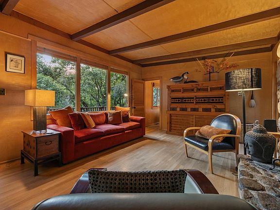 A great property with flexibility for families and friends to unite and gather. The approximately 1,000 square foot main two-bedroom and two bath home encapsulates a powerful zen spirit of the surrounding setting. Sunny patios and decks for relaxation and reflection. Up above is a newer one-bedroom and one bath modern-rustic cottage of 600 square feet that provides more private outdoor spaces. Both homes are effortlessly simple and well maintained. The property is comprised of 9 acres where you sit above the canopy of the Sycamore Canyon. Suitable as a primary or vacation home, it has great flexibility for families and is centrally located to Big Sur restaurants, amenities and parks. Used as a refuge by the owner for 30 years, daily highlights include the easy walk down to the famous Pfeiffer Beach where you walk through a grove of cypress trees that opens to windswept dunes, sculpted rocks and a soft-sand beach amongst the crashing surf of the Pacific.