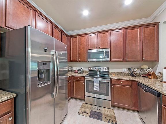 H.14684 - Fantastic spacious Townhouse end unit with upgraded impact glass windows, tiled lanai,crown molding, upgraded lighting and upgraded paint finishes. Featuring a cooks kitchen with plenty of wood cabinets,granite counter-tops and stainless steel range, refrigerator,dishwasher and microwave. The main floor offers a spacious ceramic tiled living area, high ceilings with crown molding, formal dining area, powder bath and deep storage closet.Three bedrooms share the second floor with a spacious master suite with separate walk-in closets, dual vanities and large walk-in shower plus the two guest bedrooms with their own bath. Walk-in closets keep everyone happy with lots of storage and organization. One car garage is attached.