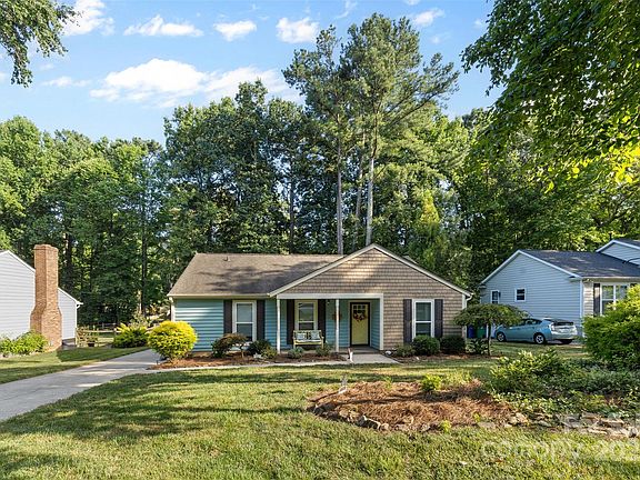 Welcome to this beautiful ranch-style home that blends comfort with modern updates. Enjoy the remodeled kitchen and bathrooms featuring stylish finishes, including a fully tiled master shower with glass enclosure. The home offers a mix of laminate flooring and cozy carpet, creating a warm, inviting feel. The spacious primary bedroom includes a walk-in closet, and the second bedroom also has its own walk-in. Relax by the gas log fireplace or step outside to a lovely deck overlooking a manicured, easy-to-maintain backyard with mature trees that provide ideal shade. This outdoor space is a rare find! Conveniently located near I-485 for quick access to shopping, dining, and commuting. This move-in ready gem is waiting for you—don’t miss out!