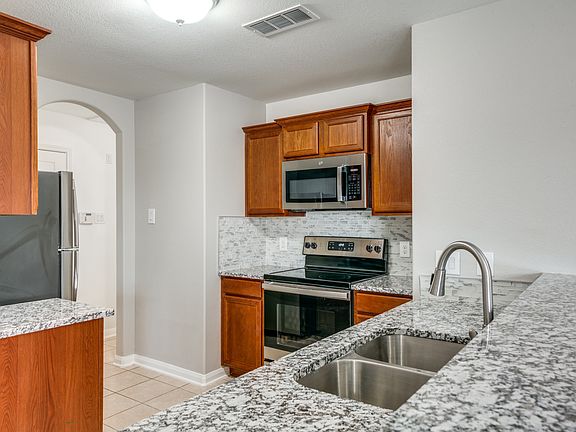 Beautiful 3-bedroom 2-bathroom 1,131 square foot home with two-car garage in sought after Deer Creek North!! The modern kitchen boasts stainless-steel appliances with warranties, granite countertops, accent lighting, gorgeous backsplash, and beautiful ceramic tile! Fresh interior and exterior paint. New flooring throughout. New decorative lighting throughout. HVAC professionally maintained. The oversized master suite features a garden tub, shower, and huge walk-in closet! Spacious fenced backyard, great for entertaining!! Playground and community pool opening this summer. Easy access to excellent schools, superb shopping, fine dining, and Interstates.
