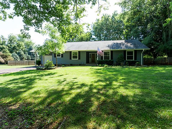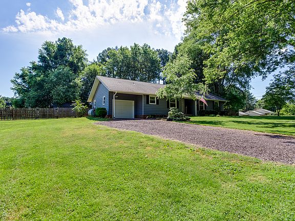 One level living home sits on a nice corner lot with mature trees, off of a low traffic road in a tranquil, restful & relaxing area. Slate walkway leads to a tile covered porch. Finished in place hardwood flooring throughout home except for vinyl in kitchen. Wood burning fireplace in living room with mantel. Fenced in back yard with tiered deck, enclosed hot tub for relaxing and shed for storage. Property corners are marked & goes beyond the fence. Work from home with high speed Comcast internet.