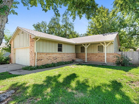 Welcome to Prairie Park! This 3-bedroom, 2-bath home is nestled in the sought-after Goddard School District and offers both charm and potential. From the moment you arrive, you’ll appreciate the inviting curb appeal, mature trees, and covered front patio. Inside, the spacious living room provides a warm welcome, while the kitchen offers generous countertop and cabinet space, plus all appliances stay. The primary suite includes its own private bathroom, and two additional main floor bedrooms provide comfortable space for family or guests. The basement is a true bonus, featuring a large rec room with a great floor-to-ceiling brick fireplace, plumbing for a future bathroom, and an unfinished non-conforming room ready for your customization. Step outside to a backyard built for enjoyment, complete with ample space, mature landscaping, and a privacy fence. For added convenience, there is a sprinkler system in the front yard that could be extended to the back if the next owner chooses! This well-cared-for home has great bones and is ready for you to add your personal touch and updates to make it truly your own.