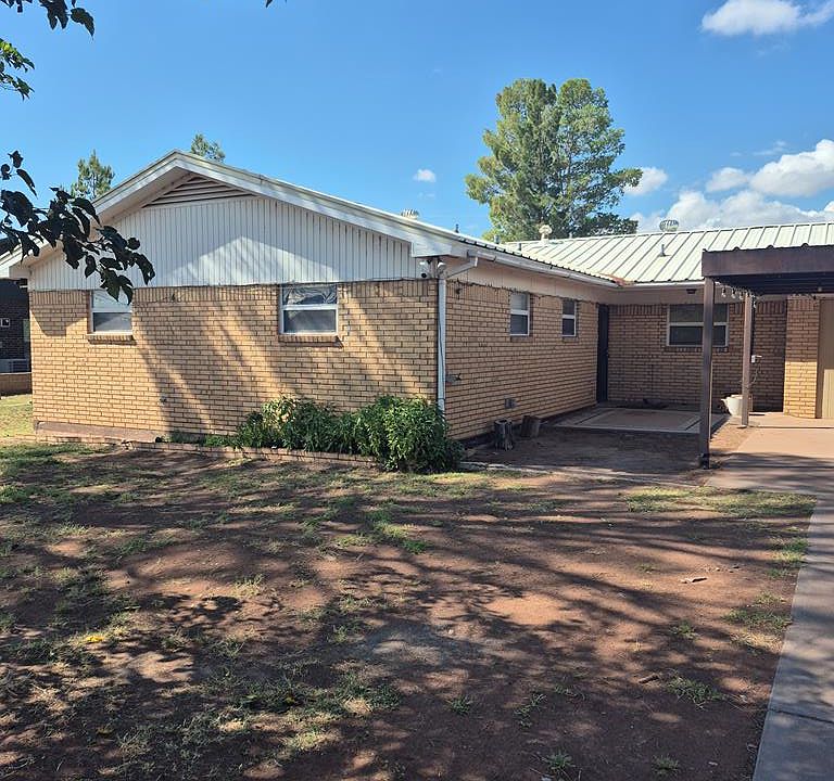 A great functional brick home with 2000 sq ft. to spread out. 3/2.5 on a larger lot. Has a newly added on office connected to house, and an unattached partially insulated shed with electricity. Fenced yard with alley access. 2 extra-large sheds convey. Great covered carport with a 2 rolling gates, one to close off back yard and one at entrance. Lots of hookups to water and electricity around yard alone with a covered patio.