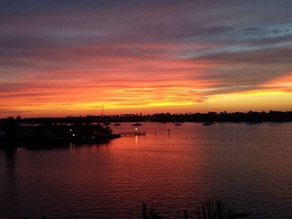 Resort style living at its best! Enjoy beautiful sunsets in this amazing condominium that has spectacular water views from every angle and custom upgrades throughout. It features 3 large bedrooms, a den/office and 3 full baths. The kitchen is perfect for entertaining and has so many custom features which include: granite counter tops, stainless steel appliances, an island, 42" raised panel maple cabinets with crown molding, under cabinet lighting and lots of storage. It also features 18" inch floor tile and built in pantry. The laundry room is located in the unit with overhead cabinet. The living areas have Brazilian cherry floors, throughout except the wet areas and custom tray ceilings. The master bedroom is oversized with a huge California closet with tons of shelves and extra space. The master bath has double sinks, a large garden tub and a large separate shower. Other additional unique features include 3M Sun Control window films, impact and hurricane resistant windows, sliding patio doors with lots of natural light, crown molding and 6" base boards in every room including the bathrooms. The unit has an attached 2 car garage. The building has an elevator for easy access to the unit. Gated community with a club house and dock that overlooks the water, resort style swimming pool, with a heated spa and a fitness center.