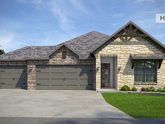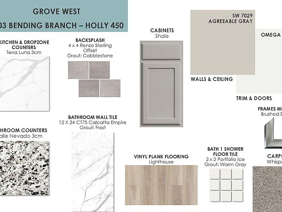 This kitchen in this Holly 450 in Grove West in Temple is a dream with marbled quartz countertops and designer backsplash paired with light wood-look flooring! Enjoy extra space throughout including a study, third car garage, and large covered patio. This home will not last long!