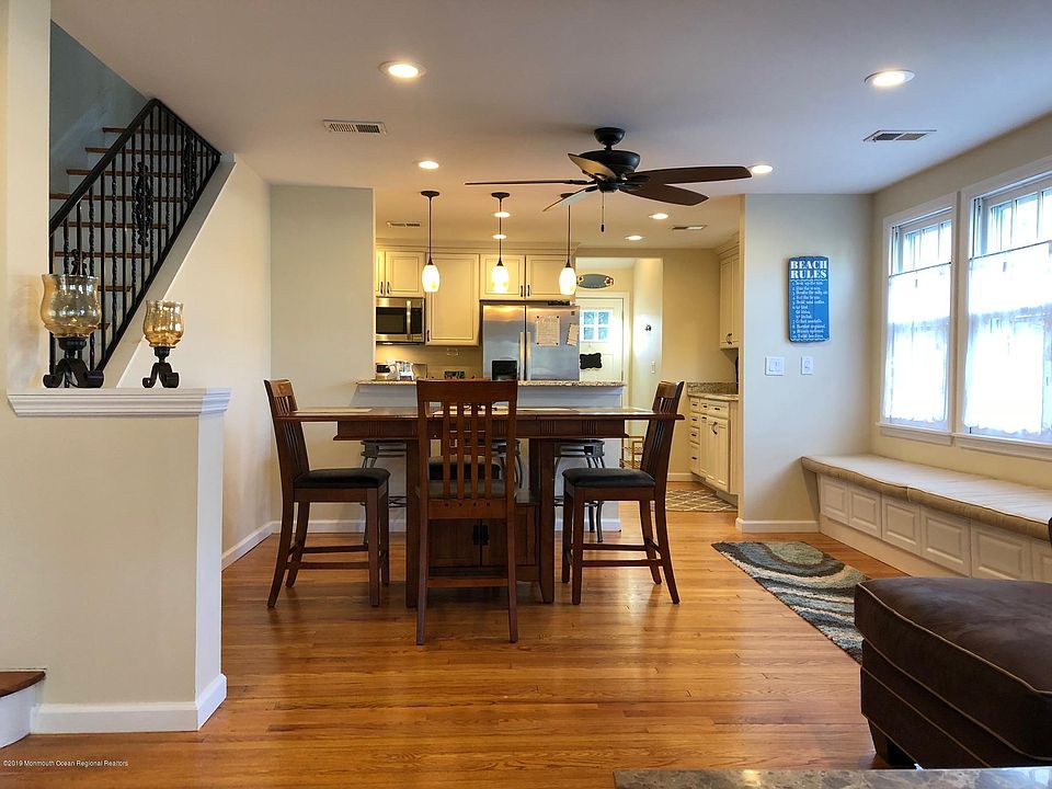 WINTER RENTAL - Gorgeous Craftsman Colonial located three blocks to the beach and close to town available now 'til 5/15/26. This impeccable home is tastefully furnished, features central a/c, gas forced hot air heat, a lovely enclosed front sun porch, refinished hardwood floors, open floor plan with designer kitchen & breakfast bar, dining room with built in window bench and inviting living room. Both bathrooms are nicely remodeled, there are three bedrooms on the second level, and a finished basement with laundry room. Home has a fenced back yard, outdoor shower, stone paver patio, barbecue grill, long driveway and garage bay access for storage (great for beach gear, bicycles, etc.). One small dog ( 30lbs) will be considered for an additional $50/month. No cats or other pets. No smoking!