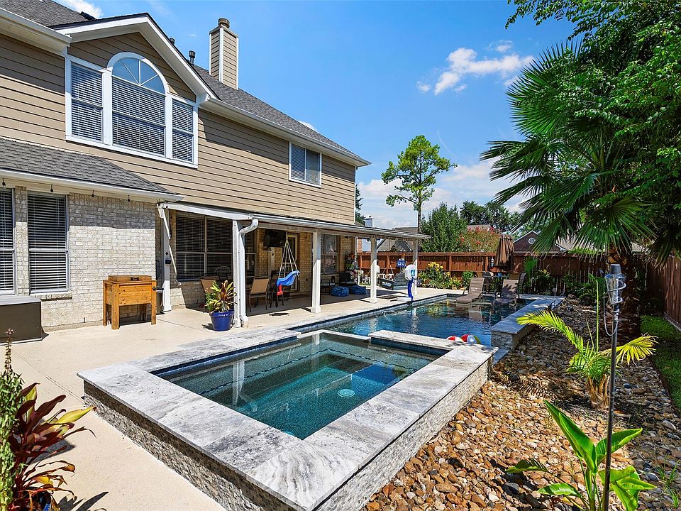 Heated poolHot tubPrivate backyard oasisFormal dining roomSoothing waterfallCovered patioLarge game room