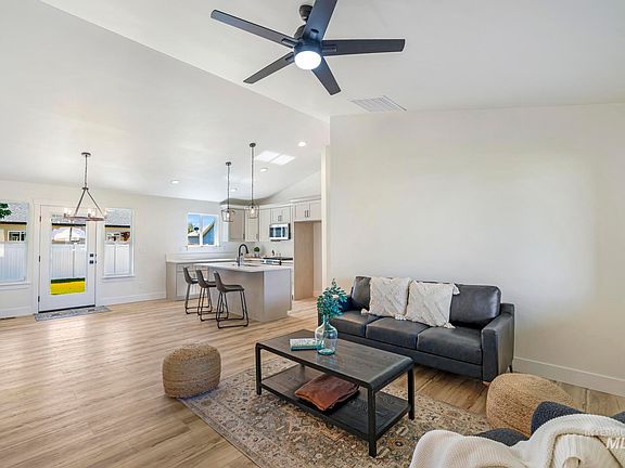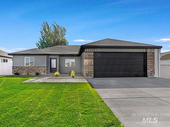 This beautifully designed home, built by CA Homes, Parade Winner, Magic Valley Builder's Parade of Homes, 2023, 2024, 2025 and offers an open-concept design with vaulted ceilings, 4 bedrooms, 2 baths, and 1482 sqft., of living space. The home is thoughtfully appointed with quartz countertops, locally made soft-close cabinets, luxury vinyl plank flooring, and plush carpeting. The kitchen features a four-burner gas cooktop with a griddle and there is plenty of storage throughout the home. In addition, enjoy modern elegance from Pfister matte black plumbing fixtures throughout. The property is light and bright, and the 2-car garage is finished with baseboards! Bonus, front & rear sprinkler & Sod and vinyl fencing included. Discover your dream home in Stoney Ridge Subdivision, Jerome, Idaho! **Images reflect a similar past build** BTVAI