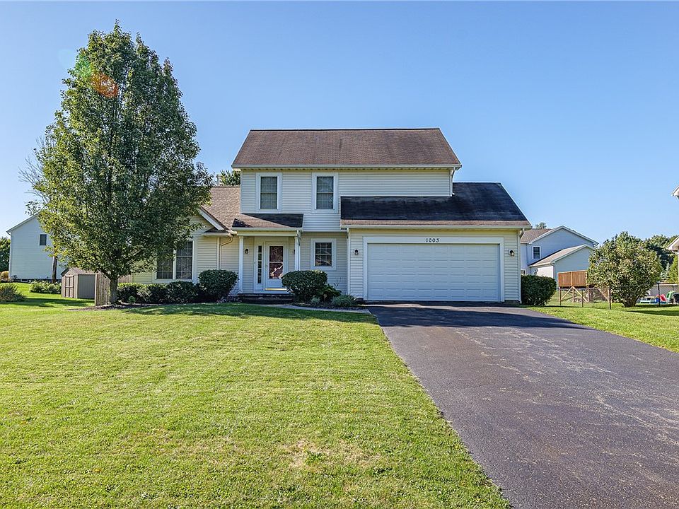 WEBSTER CHARMER hits the market!! On a quiet side street, in a great development, is this warm and inviting home. As you step inside, you're met with a beautiful living room on the left with VAULTED CEILINGS and HUGE WINDOWS that bring in So Much NATURAL LIGHT! There is a dining room right before you set foot into this GORGEOUS EAT-IN KITCHEN! Cherry Cabinetry, QUARTZ COUNTERS, Tile Backsplash, and all open to a SECOND LIVING AREA! A Sliding Glass Door (with integral blinds) takes you to a HUGE BACK DECK, overlooking you FULLY FENCED IN BACK YARD!! The first floor rounds out with a powder room and 1st FLOOR LAUNDRY as well! As we head upstairs we have an impressive exposed staircase that leads you to 3 bedrooms; with the Primary Bedroom being MASSIVE, with a HUGE WALK-IN CLOSET!! There is a Spacious Full Bath up there as well! NEW IN 2018: Furnace, AC, and Hot Water! Don't miss your chance for such a METICULOUSLY MAINTAINED HOME, and completely move in ready! Delayed Negotiations; Offers due Tuesday 9/9 at 5pm. OPEN HOUSE Saturday 9/6 from 12-2PM. Square Footage per plans and attached GLA document.