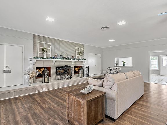 Welcome to this beautifully updated 4-bedroom, 3.5-bathroom home nestled on a gracious 0.44-acre tree-shaded corner lot. Offering 4,651 sq ft of thoughtfully designed living space, this home provides abundant room for both relaxation and entertainment. The spacious chef’s kitchen features extensive cabinetry, quartz countertops, and stainless steel appliances, including a 5-burner gas range in a large center island. The kitchen flows seamlessly into the dining room, where you can enjoy views of the serene backyard oasis with a sparkling in-ground pool and a brick privacy fence—perfect for entertaining or quiet evenings at home.. The home offers two inviting living rooms, one with a charming brick fireplace, the other with a stylish mock fireplace—ideal for cozy gatherings. The spacious primary suite is a true retreat with its own sitting area, a cedar-lined walk-in closet, and a luxurious en suite bath. Three additional guest bedrooms are generously sized, providing plenty of space for family or visitors. A large laundry room with direct access to the pool area makes clean-up a breeze after a day of entertaining. Additional highlights include a side-entry 2-car carport with a large storage room, making this home as practical as it is beautiful. This move-in-ready home offers the perfect blend of modern updates and timeless character — ideal for both everyday living and entertaining. With its ideal combination of space, style, and functionality, this home is ready to welcome you!
