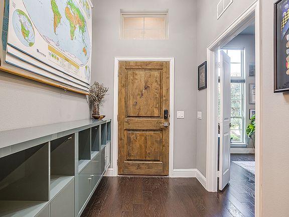 Come live life on the edge! The edge of Viridian that is. This unbelievable home is uniquely positioned on the far North perimeter of the subdivision which gives it one of the best waterfront views in the neighborhood. Imagine sitting on your outdoor patio, built to last with Trex products, watching the herons & egrets soar across the water as you sip your morning coffee. 1003 Hurricane Creek Trail offers you just that. Inside the home you will be greeted by a proper foyer with room for art, storage or furniture. To the left of the foyer, one of the bedrooms is being used as a stunning home office & library. Loads of natural light, tall ceilings & enough room to add a wall to make this 2 rooms should you wish as the new owner. Once you round the corner, your eyes will be drawn straight to the huge open plan that includes the dining room, a kitchen made for baking and conversations around the center island and of course, the living room with a wall of floor to ceiling double sliding doors leading to your outdoor oasis. This trifecta of rooms blends seamlessly into one space that simply makes sense for everyday life. The master suite is located on the north side of the home with those same amazing water views and a dreamy custom closet. Upstairs is a secondary master or guest suite, with a massive bedroom with an en suite bathroom. It currently serves as a gym, home office and bedroom. And yes, that murphy bed is yours with an acceptable offer if you want it. And while it's not pictured, there is a giant storage space off of this room too! This is one of those homes where you just can't understand how so much excellence is hidden behind the exterior walls. You have to come see it for yourself. It's light, it's low maintenance, it's a place to exhale. It's surrounded by walking trails, wildlife, pools, a tight knit community of people and it's centrally located to just about everything DFW has to offer. This one really feels like home.