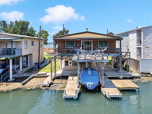 This cozy 2-bedroom, 1.5-bath home sits on 53 feet of serene waterfront cove on Lake LBJ in the beautiful Texas Hill Country. With 1,020 sq. ft. of living space, this home features an open floor plan that combines the kitchen and living area into one inviting space, perfect for entertaining or enjoying peaceful lakeside living. The home is elevated on stilts, providing a covered parking area and a shaded porch to take in the tranquil surroundings. Both the home and the dock are ready for some TLC, offering the opportunity to make this lakeside retreat your own. Whether you're looking for a weekend getaway or a place to call home, this property’s incredible location and potential make it a rare find. Don't miss out on this opportunity with direct access to Lake LBJ's endless recreational opportunities! “Living the Lakelife doesn’t get any better than this”