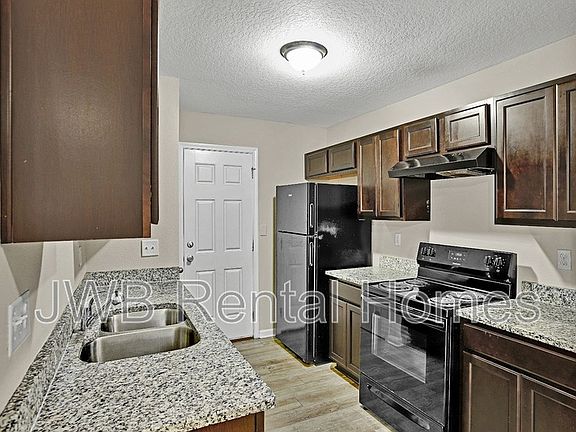 Step into this inviting 3-bed, 2-bath Northside home featuring an open floor plan and wood-look vinyl flooring throughout. The kitchen offers granite countertops, hardwood cabinets, refrigerator, and electric stove/ovenperfect for everyday living. Enjoy outdoor moments on the porch, patio, or in the spacious yard. With central A/C, washer/dryer hookups, and a 1-car attached garage, comfort meets convenience. Near Trout River, Gateway Town Center, and Ray Greene Park.
