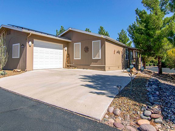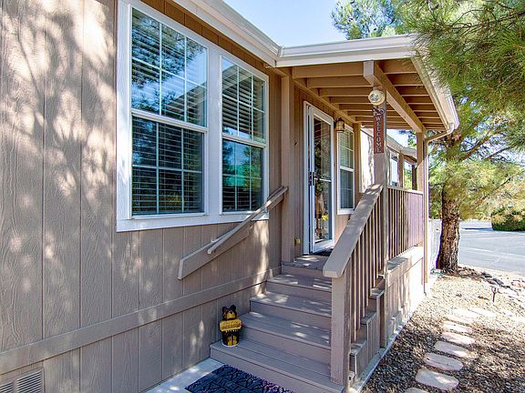 This home is located in a 55+ community which includes indoor swimming pool, bocce ball courts, clubhouse and reduced tee times at adjoining Coyote Trails Golf Course. The 2007 CAVCO home was previously a model with 2 bedrooms plus an office/den. It has many upgrades including beautiful Alder cabinets in the kitchen, upgraded bathrooms, upgraded vinyl plank flooring, double doors into the office and a new roof in 2018. Lot Rent for this home is $585/month and includes water and all amenities. The leased solar panels help keep your electricity bills low. This is a must see!