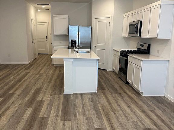 This stunning 3 Bedroom and 2.5-bathroom two-story home features an open-concept design with charming curb appeal and modern exterior. The main level showcases an open living and dining area flowing into a functional island kitchen with quartz countertops, beautiful cabinetry, and stainless steel appliances. Upstairs, you'll find three spacious bedrooms with built-in closet storage, two full bathrooms, and a conveniently located laundry room. Complete with an attached garage and driveway, this home offers both style and convenience in an excellent Legacy Park location. Ready for September 2025 move-in - schedule your showing today! Virtual tour video available upon request.