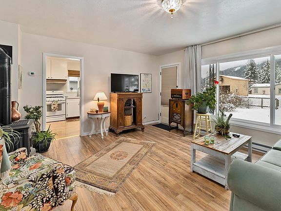 New electrical, insulated plumbing, flooring, refrigerator, updated bathroom, window shades and rain gutters plus recently upgraded dual paned windows, a cozy Lopi gas fireplace, and electric baseboard heaters are featured in this single level, 3 bedroom, 1 bath home on a 1/3 acre fully fenced yard. Enjoy beautiful mountain views and an abundance of natural light, separate laundry/utility room, loads of storage and attached mudroom. Outside mature landscaping adjoins the 2-car garage with a 20 x 12 workshop with CB Radio antenna, a second large workshop/storage shed with power and 16 x 12 chicken coop with enclosed run. On a paved road, this home is within the city limits and walking distance to town, a library, Jr./Sr. High School, restaurants, golf/disc golf course, playground and hiking trails. Just minutes away from the Clark Fork River fishing access, Scotchman Peak Wilderness Area and Lake Pend Oreille. A short 30 minute drive to the resort town of Sandpoint with shopping, restaurants and first class skiing at Schweitzer Mountain Resort. Don't miss your opportunity to own this exceptionally cared for home as your new home or investment opportunity.