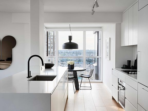 Chic city home @ Seastar by Bosa Properties, entirely reimagined by Provide Home & Robert Bailey Interiors. This residence boasts 926 sf of open plan interior and offers captivating False Creek views w/ E & S exposure. A focal gas fireplace is featured & the kitchen is furnished with custom cabinetry, a Kallista faucet, cearstone counters/backsplash and integrated Bosch & Liebherr appliances. The bathroom is fitted w/ Duravit fixtures, custom tile work & Nuheat. Stunning white oak plank hardwood throughout and black hardware accents reflect the home’s signature style. Seastar is a well-respected, meticulously managed address, and the amenities include a caretaker, guest suite, fitness center, lounge/garden area & ample visitor parking. This sophisticated designer's dream residence awaits.