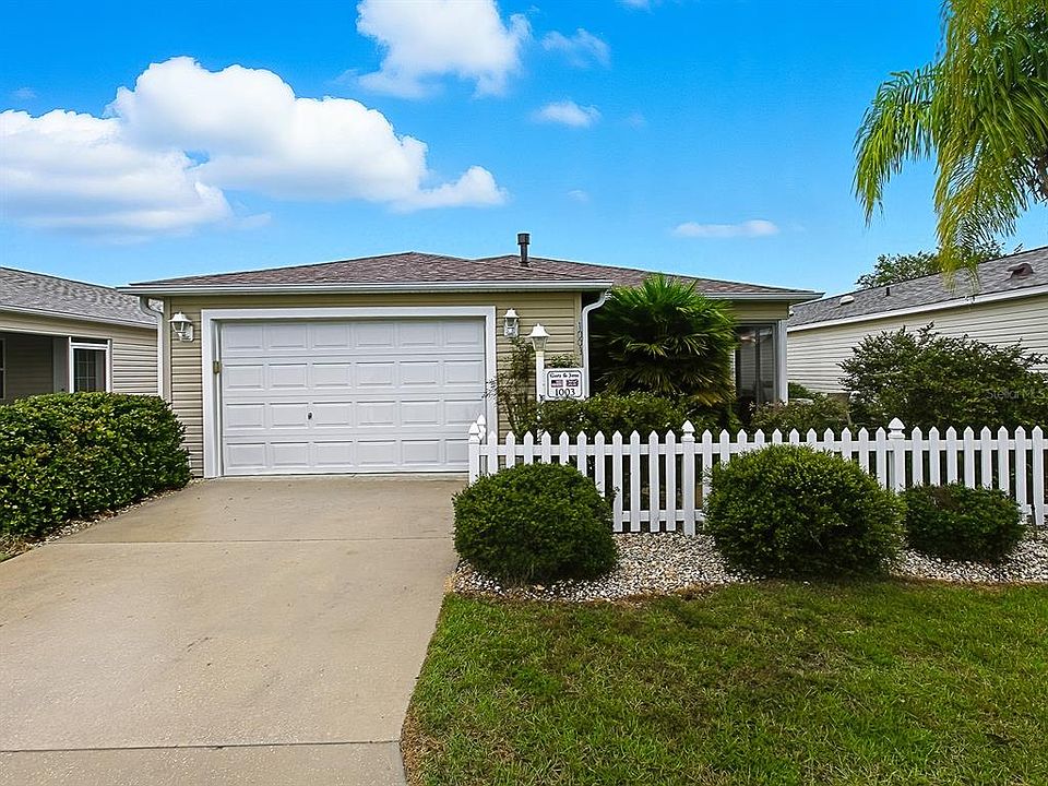 BOND PAID! ROOF 2023! HVAC 2024! WELL MAINTAINED COLONY PATIO VILLA LOCATED IN THE VILLAGE OF SABAL CHASE, CLOSE PROXIMATEY TO LAKE SUMTER LANDING MARKET SQUARE AND TWO (2) BLOCKS FROM SABAL CHASE POOL. Spacious, Open-Concept Living/Dining Area with Two Bedrooms & Two Baths in Oleander Villas, right off of Canal Street near so many recreational options. Designed for both Comfort and Style, this Villa features easy-care TILE FLOORING throughout the main living area and cozy carpet in bedrooms. The KITCHEN features Wood Cabinetry, Granite Counters, Solar Tube, White Appliances w/ GAS Range, a Closet Pantry and a Breakfast Bar. The PRIMARY SUITE offers a Large Walk-in Closet and a refreshed EN-SUITE with GRANITE COUNTERS and an UPDATED STEP-IN TILE SHOWER. The Guest Bedroom with Built in Closet has an adjacent bath with Granite Countertop Vanity, updated TILE Tub/Shower combo. Enjoy relaxing or entertaining in the Enclosed Lanai, perfect for year-round use. The Front & Side Patio have been enlarged for additional outdoor enjoyment. Laundry Closet is located in the Kitchen for everyday convenience. The Garage includes space for your golf cart, and there are pull down stairs to access the attic. WITH BOND PAID & A PRIME LOCATION NEAR ALL THE VILLAGES AMENITIES, THIS MOVE-IN READY VILLA IS A PERFECT FLORIDA RETREAT, SNOW BIRD GET-AWAY, and/or MAKES FOR A TERRIFIC RENTAL! *FURNISHINGS OPTIONAL*