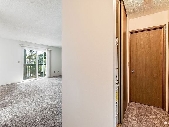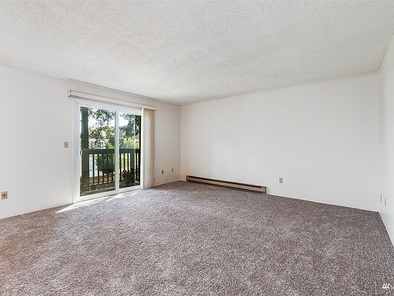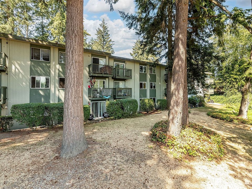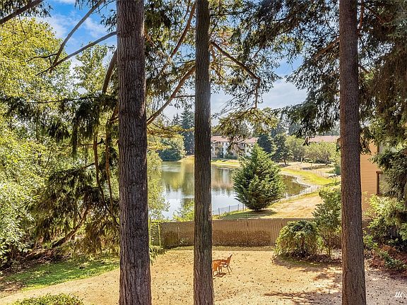 Enjoy the serenity of a peaceful view out to Easter Lake from this clean and well cared for top-floor unit in Forest Lake Condominiums! Quiet and secluded complex surrounded by ample greenery. This two bedroom, one bathroom home sparkles with fresh paint and new carpeting. Living room has a large, light-filled sliding door accessing a quiet balcony that overlooks the grounds and birdwatching on the lake! All appliances, including the stacking washer/dryer stay with the home. Updated double pane windows. Covered parking place and additional apx. 3'x 9' storage unit are included! Quick drive to commuter routes and Federal Way shopping and restaurants!