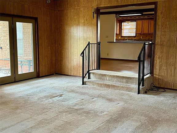 Affordable!!! This home is located in a great neighborhood with a large private backyard. It has an extra large utility room and 2 living rooms. Both living rooms include a fireplace and great space! The galley kitchen with space for your dining room table has nice wood look flooring and a gas stove. Updated bathroom in the primary bedroom and ceiling fans in most rooms. The downstairs den opens to the backyard. It is large with complete privacy and the covered patio will make great outdoor living space. There is a storm cellar under the covered patio with easy access. The large garage offers lots of storage and a small storage shed makes a great area for lawn mowers and extra storage. The front and back yard have large trees and beautiful yards.
