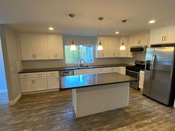 Discover this beautifully renovated 2 bed/1 bath unit featuring modern finishes and an open-concept layout. The spacious living area boasts recessed lighting, wood-style flooring, and large windows that fill the space with natural light. The stylish kitchen is a chef's dream, complete with elegant white cabinetry, sleek quartz countertops, stainless steel appliances, a subway tile backsplash, and an oversized island perfect for dining and entertaining. The bathroom offers a spa-like feel with marble-style tiled walls, a modern showerhead, and high-end fixtures. Nestled in a quiet neighborhood, yet close to shopping, dining, and easy freeway access. The bedrooms are bright and inviting, featuring large mirrored closets and ample natural light. Step outside to a spacious driveway with parking and an attached single vehicle garage. Descubra esta hermosa unidad renovada de 2 habitaciones y 1 bano, con acabados modernos y un diseno de concepto abierto. La amplia sala de estar cuenta con iluminacion empotrada, pisos estilo madera y grandes ventanales que inundan el espacio con luz natural. La elegante cocina es el sueno de cualquier chef, equipada con gabinetes blancos sofisticados, encimeras de cuarzo pulido, electrodomesticos de acero inoxidable, un backsplash de azulejos tipo metro y una isla de gran tamano, perfecta para comer y entretenerse. El bano ofrece una sensacion de spa con paredes revestidas de azulejos estilo marmol, una moderna regadera y accesorios de alta gama. Ubicada en un vecindario tranquilo, pero cerca de tiendas, restaurantes y con facil acceso a la autopista. Los dormitorios son luminosos y acogedores, con amplios armarios con espejos y abundante luz natural. Salga y disfrute de un amplio camino de entrada con estacionamiento y un garaje adjunto para un vehiculo.