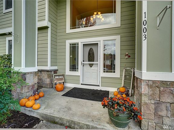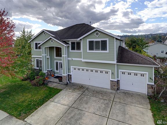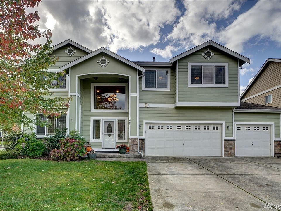 Spacious and beautiful 5 bedroom 3.5 bathroom in Village Green! Vaulted ceiling in entry, hardwood floors with formal living/dining rooms, open concept kitchen w/breakfast nook and stainless appliances. Main level guest suite w/full bath. Master suite upstairs with 5 piece bath, huge bonus room, upstairs utility room. 3 car garage, WIRED FOR GENERATOR, **newly painted exterior**, fully fenced backyard, adjacent to community park. Convenient location in small town community of Orting!