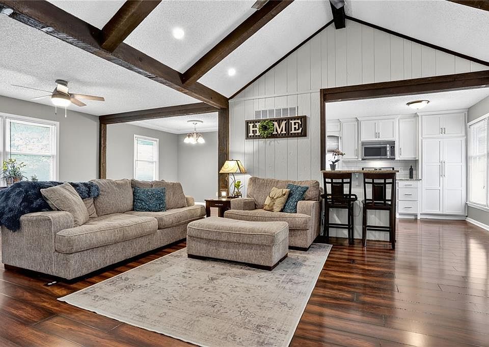 Extra deep garageFully fenced backyardNew composite deckOpen floor planUpdated kitchenLarge recreation roomVaulted ceilings