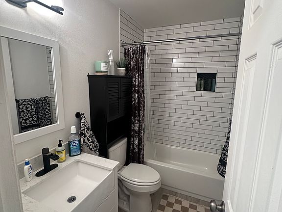 Prime location in South Austin in a quiet neighborhood with a spacious backyard! Easy access to MoPac, IH-35, and just 15-20 minutes from downtown Austin. Large master bedroom with a walk in closet with barn doors and connected bathroom with walk in shower. Large second bedroom with separated bathroom with tub. Large 3rd bedroom that can be used as an office or second living room, that also has a stacked washer-dryer in custom cabinets with a folding table and clothes hanging rack. Open style and connected living room and kitchen with large windows letting in lots of natural light with plenty of space for a dinning table. Kitchen has a protruding island with lots of counter space, floating shelves for dish ware, plenty of below counter cabinets and drawers for all kitchen essentials, dishwasher, oven, refrigerator with freezer and ice/water dispenser, and large pantry. Large Italian tiles cover kitchen, living room and entry with lament flooring in all bedrooms and bathroom. Home has a covered entry way with parking for 2 cars and plenty of street parking. Home has a half garage with plenty of space for storage, and could store a motorcycle but not a car. Large backyard with a covered structure with an outside fan. Backyard also has a cowboy pool!