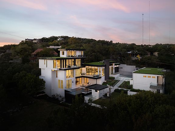 The most extraordinary home ever to grace the Westlake Hills market. A masterpiece of modern design, this architectural icon combines jaw-dropping panoramic views of downtown Austin with unparalleled luxury and innovation. Newly completed by Paradisa Homes, this gated estate redefines what it means to live at the height of sophistication. Spanning nearly 11,000 square feet on almost an acre, The Onyx offers 7 bedrooms, 8 full and 3 half bathrooms, and cutting-edge features designed for those who demand the extraordinary. Walls of glass, including a custom Fleetwood Edge system—one of only two installations in the United States—frame every living space, offering uninterrupted vistas of Austin's skyline and surrounding natural beauty. The grand interiors feature 18-foot ceilings, sleek white oak floors, and an exquisite porcelain and marble fireplace, blending bold design with timeless elegance. At the heart of the home lies a gourmet kitchen that is nothing short of spectacular. Outfitted with Gaggenau appliances, a striking Milano marble island, and flawless designer finishes, it is a true culinary showpiece. A separate scullery, functioning as a second full kitchen with Thermador appliances, ensures effortless entertaining at any scale. Steps away, a glass-enclosed wine vault showcases up to 600 bottles, serving as both a functional centerpiece and a work of art. The owner's retreat is a world unto itself, spanning 2,300 square feet of indulgence. A private lounge with a double-sided fireplace, an elegant office with custom designer doors, and two expansive walk-in closets set the stage for luxury living. The spa-inspired bath features a natural stone soaking tub that retains heat, a rain shower, and breathtaking views—a sanctuary that rivals the world's finest resorts. Designed for entertaining on a grand scale, The Onyx offers a resort-style pool and spa, a cabana with a swim-up bar, and The Sky Parlor—a rooftop venue with panoramic views perfect for hosting unforgettable gatherings or quiet moments of reflection. Additional amenities include a state-of-the-art home theater, a fitness studio with a steam shower, and a serene library. A detached guest house ensures ultimate privacy for visitors, with a full kitchen, living space, and en-suite bedroom. For car enthusiasts, the estate boasts a 6-to-12-car garage with space for lifts, offering an impeccable display of design and functionality. With its unmatched views, rare architectural features, and world-class amenities, The Onyx of Austin isn't just a home—it's a statement. Welcome to The Onyx.