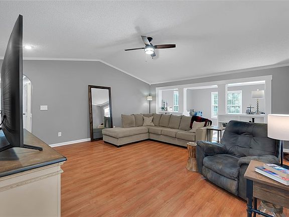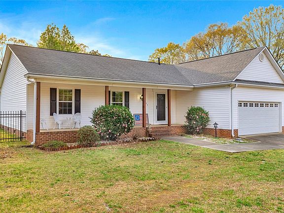 Welcome to this charming 3-bedroom, 2-bathroom home, ideally situated on a spacious 0.43-acre lot just minutes from Anderson University and Downtown Anderson. As you approach, a cozy covered front porch welcomes you—perfect for relaxing and enjoying the neighborhood. Inside, the home boasts a thoughtfully designed layout that combines comfort and convenience. The expansive living room features vaulted ceilings, recessed lighting, and laminate flooring, creating a bright and inviting atmosphere. Adjacent to the living room, you’ll find a formal dining room with LVP flooring, as well as a versatile flex space that could serve as an office, playroom, or additional living area. The kitchen is a true standout, featuring beautiful granite countertops, a farmhouse sink, recessed lighting, and 42" cabinets that provide plenty of storage. A spacious walk-in pantry provides even more room for all your kitchen essentials. Both bathrooms are equipped with granite countertops, while the primary bath has a luxurious tiled standalone shower and a separate soaking tub. Durable ceramic tile flooring extends throughout the kitchen and bathrooms, while the bedrooms are carpeted, adding warmth and comfort. For added convenience, the attached, finished two-car garage provides direct access to the kitchen, making grocery unloading a breeze. The garage also includes a storage closet, perfect for both parking and extra storage needs. Off the dining room you can enjoy the lovely 12x12 sunroom, a perfect spot to unwind and relax after a long day. The fully fenced-in backyard features a back patio with a firepit, ideal for evening gatherings. Additionally, a 10x20 outbuilding provides extra storage or workshop space. With a perfect blend of style, comfort, and location, this home is ready to become yours. Don’t miss out on the opportunity to make it your own!