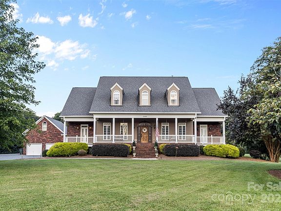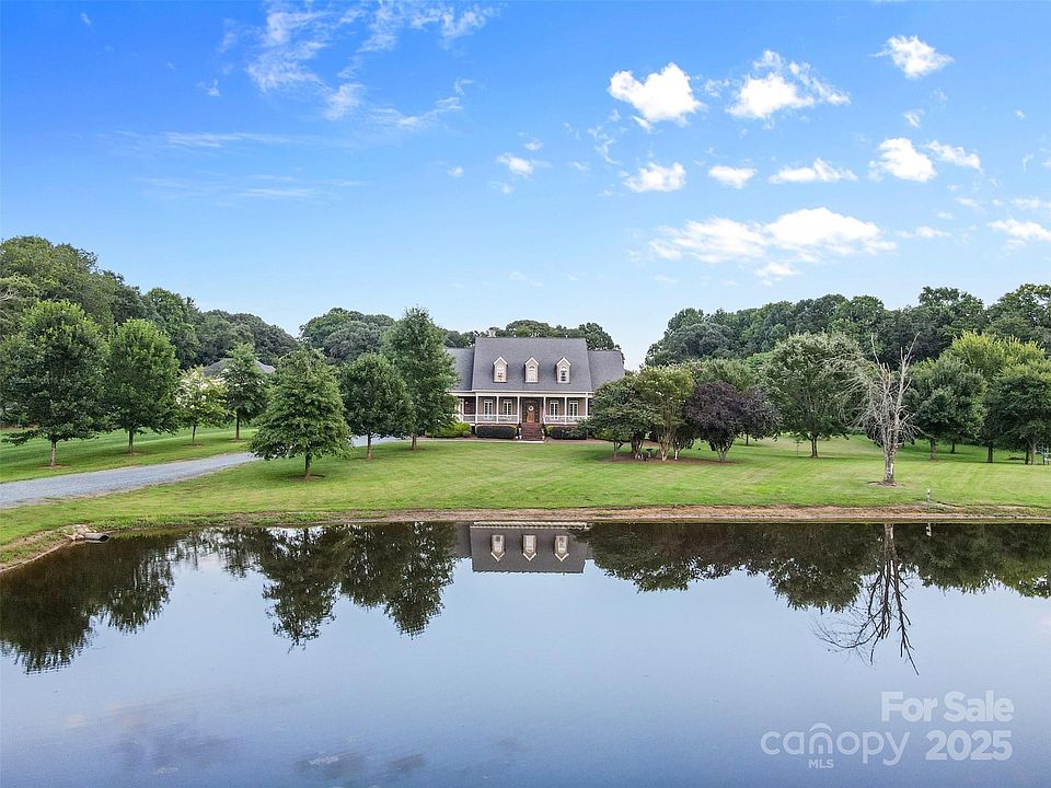 Welcome to this Retreat on Arlington Church, a rare gem on 5 acres in Mint Hill, NC! This 3,500 sqft two-story home features a 2,000 sqft unfinished basement full of potential. The property includes a serene stocked pond and two detached garages, one an impressive 36x50 structure with 10-foot doors and the other with an unheated apartment. Relax on the rocking chair front porch and take in the sunsets over the pond. Inside, a grand two-story foyer leads to a cozy office, formal dining room, and a spacious living area. The charming kitchen with unique brick flooring connects to a casual dining nook, and both open to a large deck overlooking the beautifully landscaped property. The main floor boasts a large primary bedroom with an ensuite, along with a convenient laundry room. Upstairs are three additional bedrooms. The expansive grounds offer mature landscaping, total privacy, and endless possibilities. 3 miles to Downtown Mint Hill and minutes to 485.