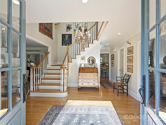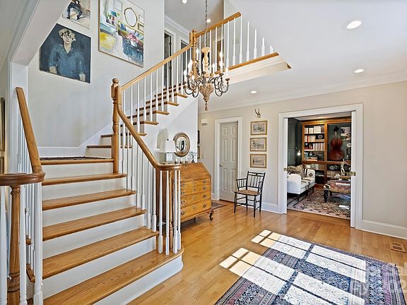 Welcome to the exceptional property set on .56 acre beautifully landscaped lot with a private, serene backyard. Step inside through the bright, welcoming foyer, featuring 3 hand-painted closet doors on either side of the entry and one near he kitchen for storage. Throughout the home, quarter-sawn hardwood floors add warmth, durability and craftsmanship.
