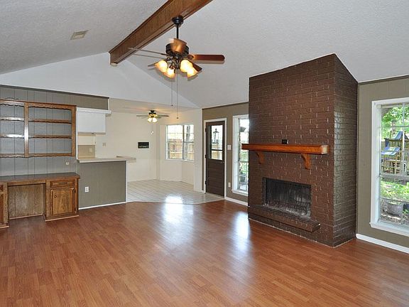 Large landscaped corner lot, new 50-gallon water heater, walk-in closets in bedrooms, updated second bath, updated fixtures, new carpet, HVAC 6 yrs old, tile in wet areas, laminate wood in den, woodburning fireplace, Koi pond, ceiling fans, cathedral ceiling in den, some built-ins,