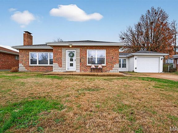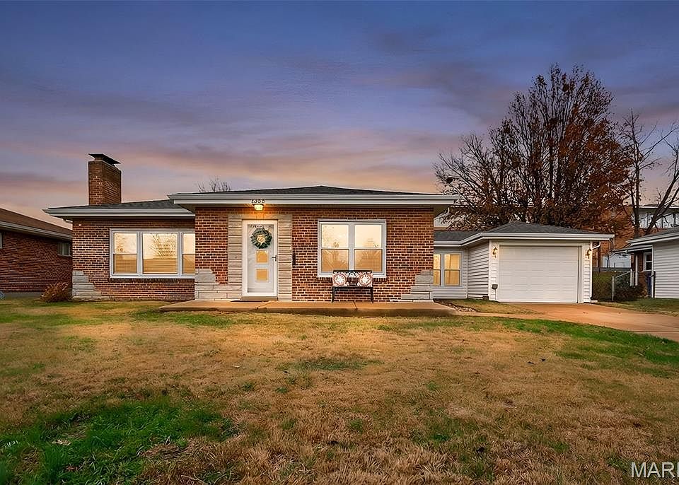 Welcome home! Discover the charm of this adorable brick dwelling, nestled in a private subdivision just minutes from all amenities! This AWESOME 3-bed, 2 full bath captivating Ranch offers gorgeous hardwood floors, new carpet in all three bedrooms, fresh paint, new ceiling fans, updated bath, a new roof in 2024 and so much more. Enter through a solid wood front door into large family/living room space with wood-burning fireplace, hardwood floors and wall of windows with plenty of natural light. Separate dining room also with hardwood flooring offset from kitchen creates an open and free flowing layout Enjoy a spacious, flat-level lot plus a one-car garage and full unfinished basement with full bathroom. The large kitchen boasts ceramic tile flooring, perfect for culinary creations, while the updated main bath adds a touch of modern elegance. With 1,422 sq ft of main-level living space, including a bonus room, this home offers ample room for most buyers. Walk to Lutheran South High School (backs to school) or explore the nearby attractions, including 9 Mile Garden, Starbucks, and Schnuck's. Neighboring Grant’s Trail/Grant’s Farm loaded with fun opportunities year-round for all to enjoy. This one won't last; a gem in a fabulous location. Home Warranty being provided. Just in time for the Holidays! See it fast! First available, Sunday at Open House, 12-2pm.